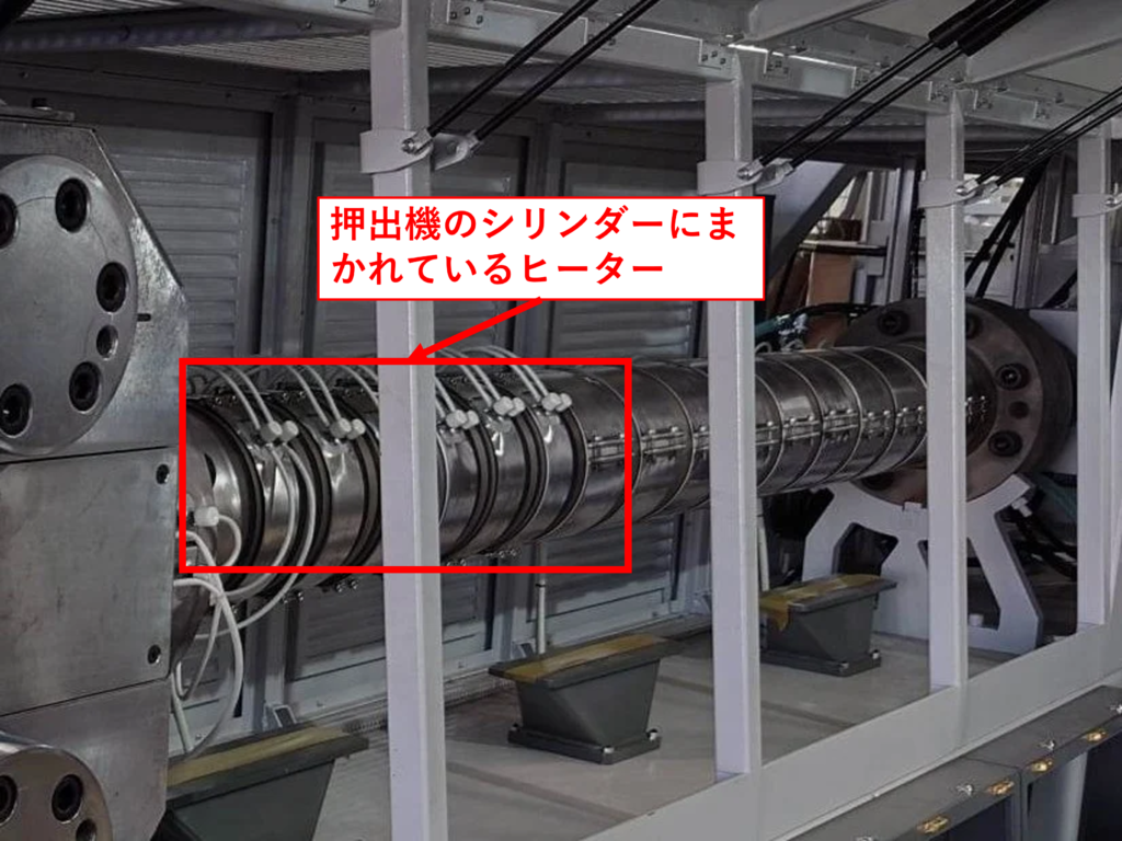 また、センサー以外にもヒーターが設置されており、ヒーターでスクリューが設置されている筒(シリンダー)を加熱しています。