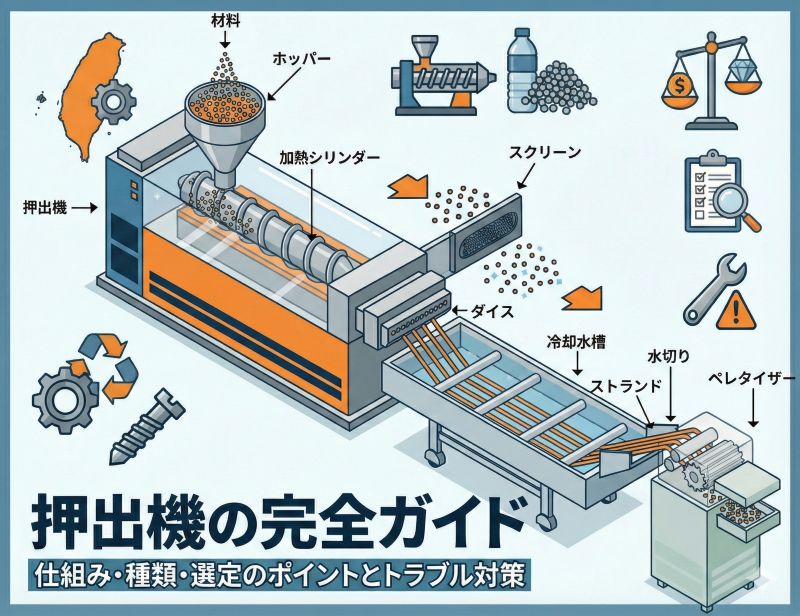 本記事では、機種選定に悩む生産技術担当者や、現場のトラブル解決に奔走する技術者に向け、押出機のすべてを体系的に解説します。