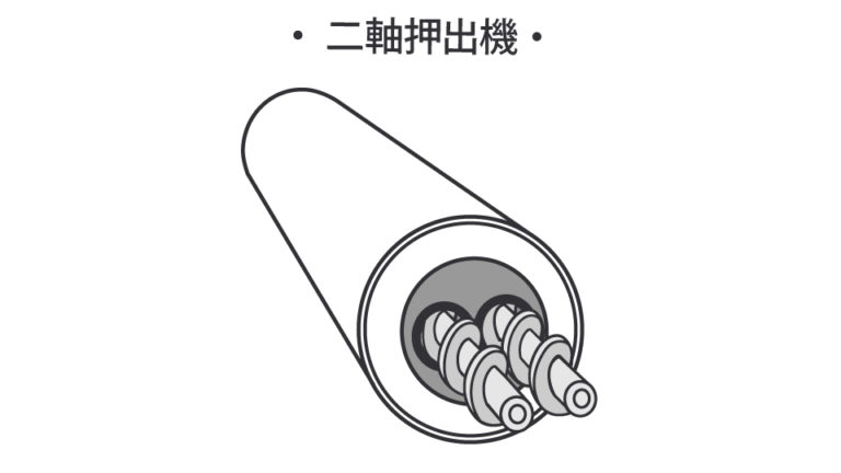 2本のスクリューを組み合わせたタイプです。強力な混ぜ合わせ(混練)能力が最大の特徴です。