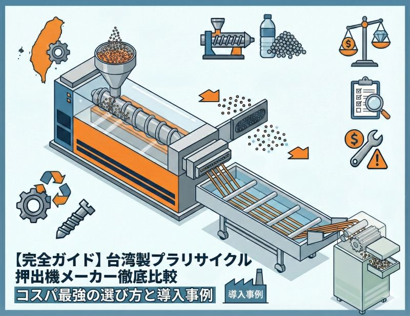 本記事では、台湾押出機メーカーの特徴、リサイクル用途での適性、主要メーカー比較、導入事例、ROIまでを網羅的に解説します。