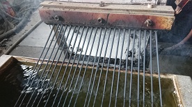 そしてその水槽の中で冷やされたストランドをペレタイザーと言う カットする機械装置の中に入れてペレットをカットする方法です。