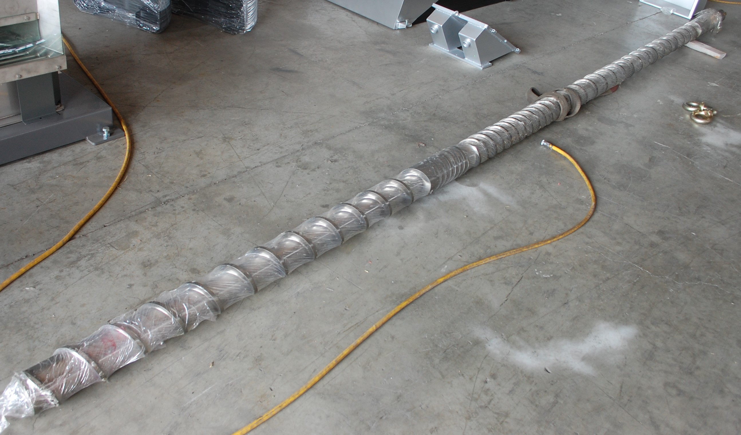 コンパウンドペレットを製造するには、押出機は一軸(スクリューが一本)では事足りませんし、かつスクリューもフルフライトでは足りません。従いまして2軸(スクリューが二本)の押出機を選ぶということになり、スクリューのデザインも練る目的に合わせてデザインするということになります。