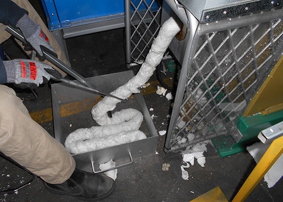 | 1.使用済み発泡スチロール 減容装置に投入して減容します |
