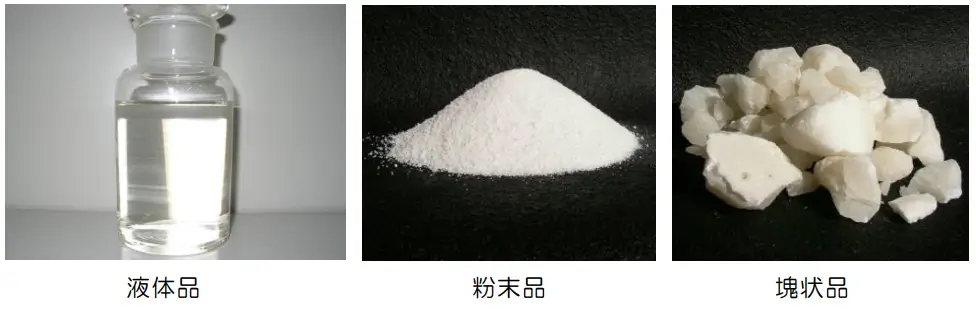 水溶液状態のもの、固形のものがあり、事業者がどのように使用したいかによって使い分けしますが、基本的には水溶液状態のものを購入して使うことが多いです。